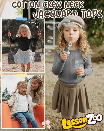 Specification: 3 Pack Girls Ribbed Long Sleeve Shirts, Cotton Crew Neck Jacquard Tops Kids Casual Layer Knit Basic Tees 3-12 Years