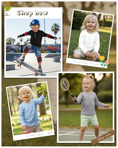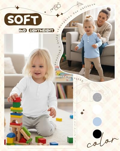 4 Pack Boys’ Long Sleeve T-Shirts Girls’ Henley Tees Casual Toddler Shirts Solid Baby Winter Clothes Unisex
