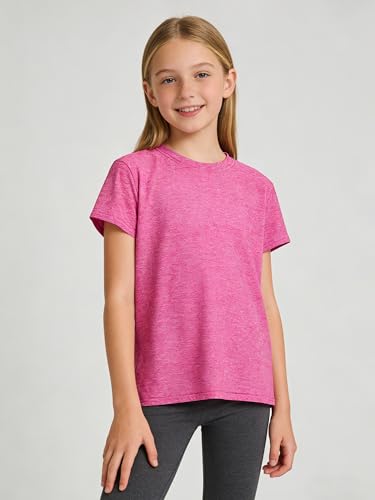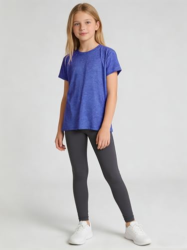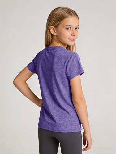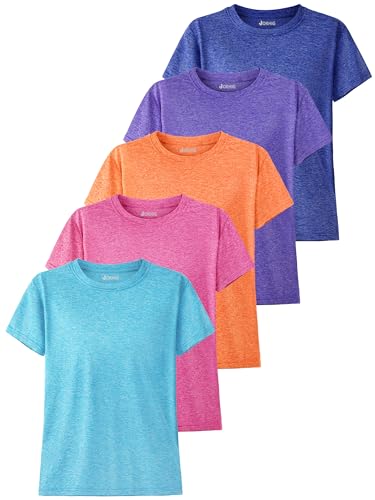 5 Pack Girls Shirts Athletic Dry-Fit T-Shirts Short Sleeve Summer Crew Neck Tops for Girls Kids Teens
