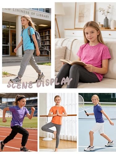 Specification: 5 Pack Girls Shirts Athletic Dry-Fit T-Shirts Short Sleeve Summer Crew Neck Tops for Girls Kids Teens