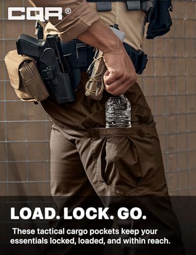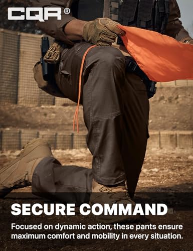 CQR Men’s Flex Ripstop Tactical Pants, Water Resistant Stretch Cargo Pants, Lightweight EDC Hiking Work Pants