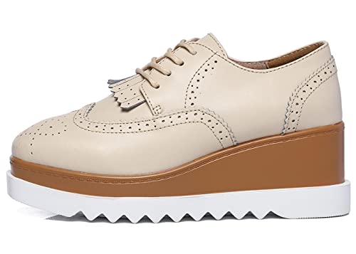 Specification: DADAWEN Women’s Fashion Tassels Square-Toe Lace-up Platform Wedge Oxford Shoes