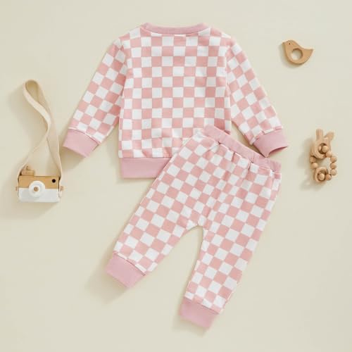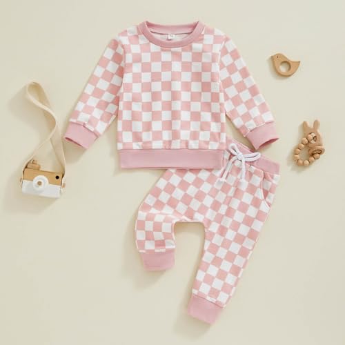 Specification: FOCUSNORM Toddler Baby Girl Fall Outfits Long Sleeve Checkerboard Print Tops Drawstring Pants Cute Litter Girl Winter Clothes