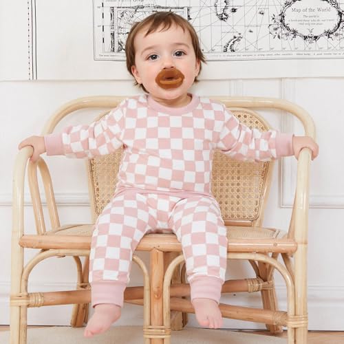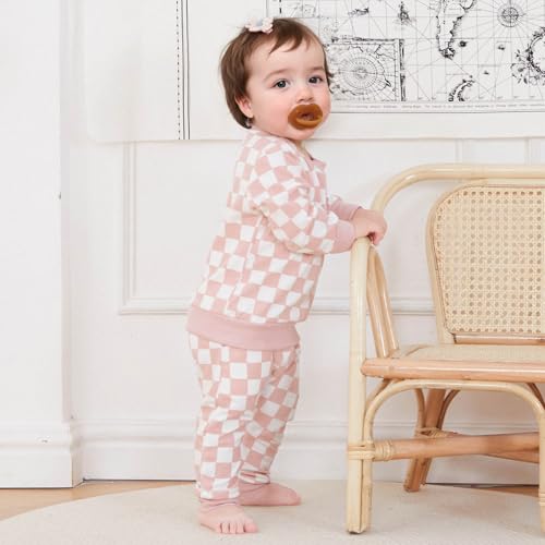 FOCUSNORM Toddler Baby Girl Fall Outfits Long Sleeve Checkerboard Print Tops Drawstring Pants Cute Litter Girl Winter Clothes
