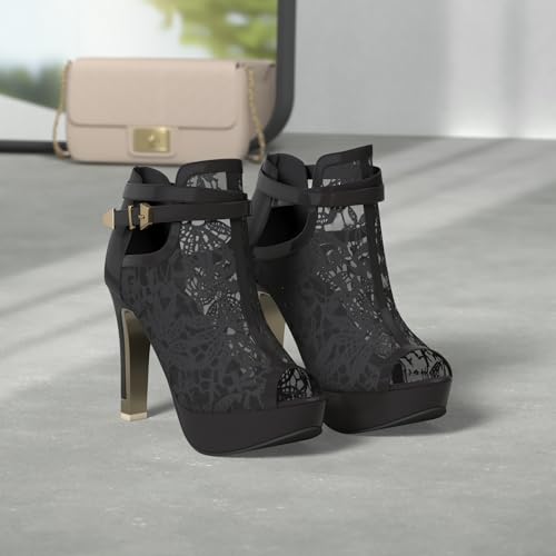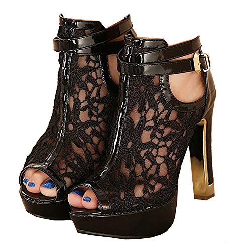 Specification: getmorebeauty Women’s Pretty Lace Flowers Open Toes High Heels Ankle Boots