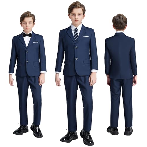 JPF Boys Formal Suits Slim Fit 5 Piece Kids Suit Jacket Pants Set with Dress Shirt and Tie for Wedding Prom
