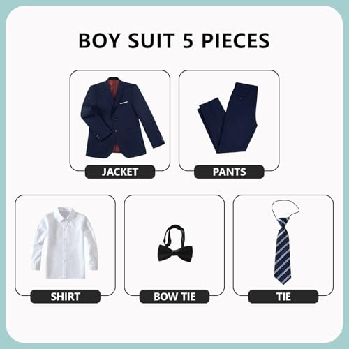 Specification: JPF Boys Formal Suits Slim Fit 5 Piece Kids Suit Jacket Pants Set with Dress Shirt and Tie for Wedding Prom