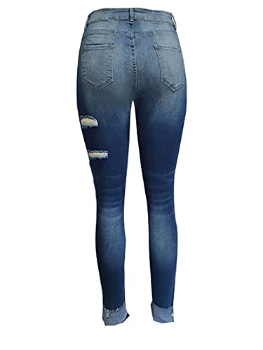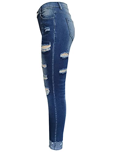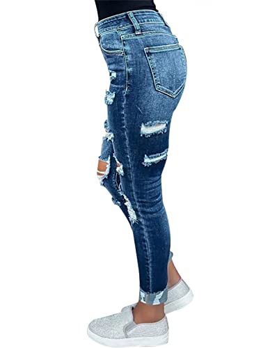 Specification: KUNMI Women’s Ripped Mid Waisted Boyfriend Jeans Loose Fit Distressed Stretchy Denim Pants