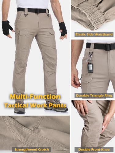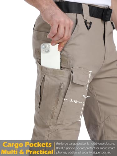 MANSDOUR Men’s Cotton Hiking Tactical Pants Lightweight Stretch Military Combat Cargo Work Pants