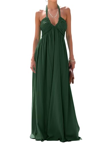 Maxi Dresses for Women Sexy Halter V Neck Backless Smocked High Waisted A Line Beach Vacation Sundress