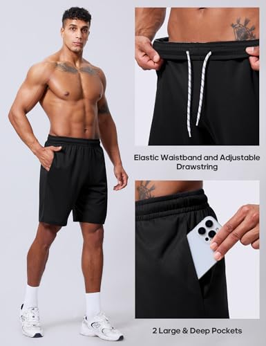 Men’s Athletic Shorts 9 Inch Inseam – Quick Dry Mesh Basketball Shorts Men, Lightweight Mens Gym Running Shorts