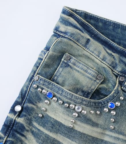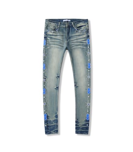 Specification: Men’s Embellished Jeans, Skinny Fit Stretch Denim Pants, Stylish Streetwear Trousers
