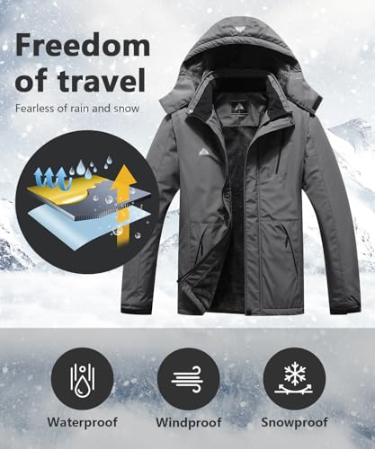 Men’s Mountain Winter Coat Warm Fleece Ski Snow Jacket Waterproof Raincoat with Hood