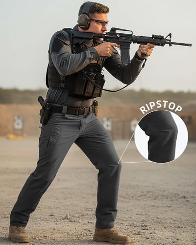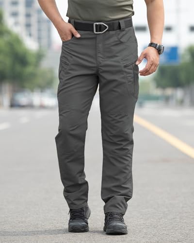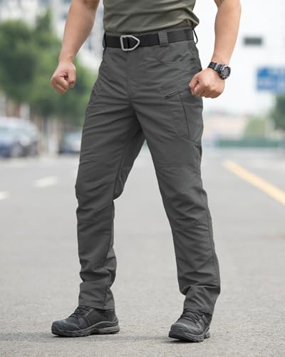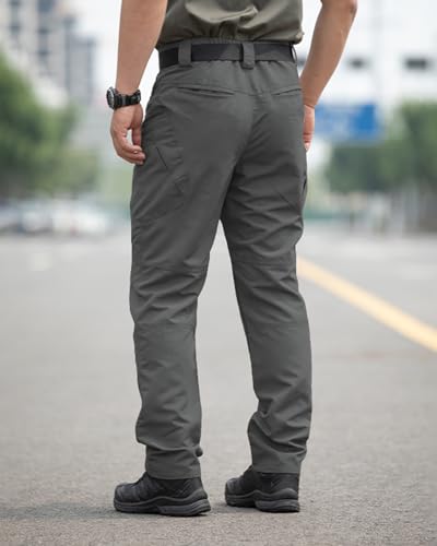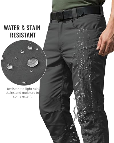 Men’s Stretch Tactical Pants Waterproof Ripstop Fabric Cargo Pants Lightweight Casual Hiking Outdoor Work Pants (No Belt)