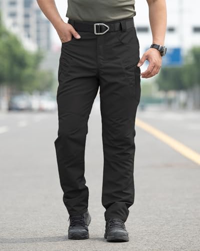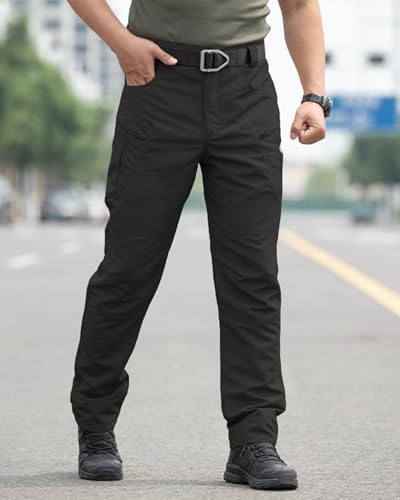 Men’s Stretch Tactical Pants,Water Resistant Ripstop Cargo Pants,Lightweight Outdoor Work Hiking Pants with Pockets(No Belt)
