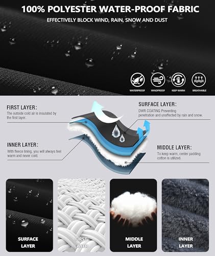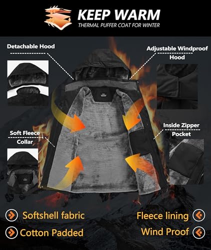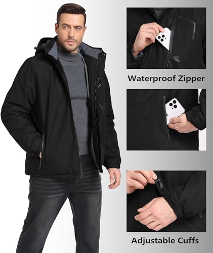 Mens Winter Jackets Waterproof Warm Fleece Ski Jacket with Hood Thermal Windproof Coat Zip Pockets
