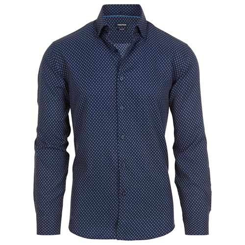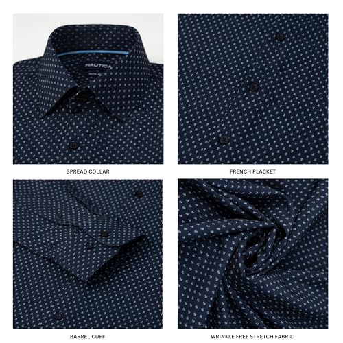 Nautica Slim Fit Mens Dress Shirts Long Sleeve Performance Polyester Fabric Wrinkle Free 4-Way Stretch