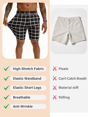 PLEPAN Men’s Slim Fit Stretch Dress Shorts 7″ Lightweight Skinny Casual with Expandable Waist Summer Shorts