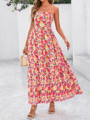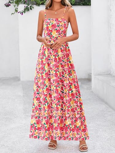 PRETTYGARDEN Women Summer Maxi Dresses 2026 Spaghetti Strap Boho Floral Striped Wedding Guest Beach Vacation Flowy Long Dress