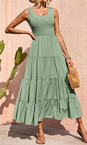PRETTYGARDEN Women’s 2026 Casual Loose Plain Maxi Sundress Smocked Tank Dress Sleeveless Spring Beach Tiered Long Dresses