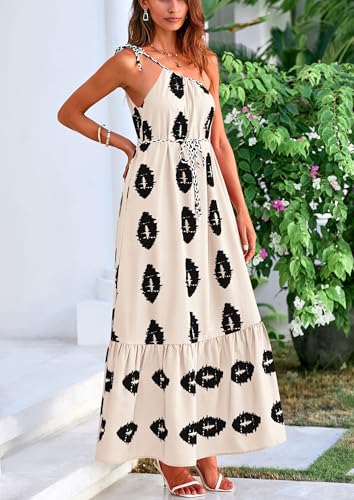 Specification: PRETTYGARDEN Women’s 2026 Summer One Shoulder Maxi Dress Printed Flowy Boho Long Sundresses Spring Beach Vacation Clothes