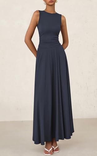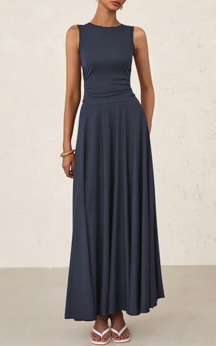 Specification: PRETTYGARDEN Womens Spring Dresses 2026 Casual Sleeveless Crewneck Aline Maxi Dress Stretch Tank Flowy Long Dresses