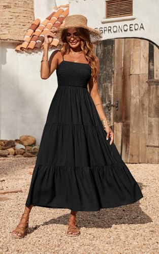 Specification: PRETTYGARDEN Women’s Summer Maxi Dress 2026 Casual Boho Sleeveless Spaghetti Strap Smocked Tiered Long Beach Sundresses