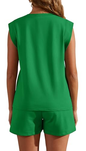 RUBZOOF Two Piece Sets for Women Summer Cap Sleeve Lounge Short Sets Crewneck Outfits with Pocket