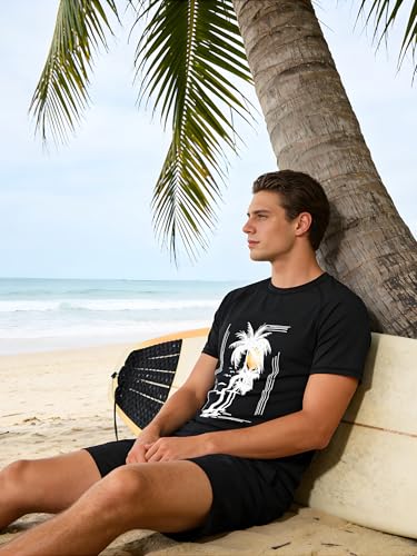 Satankud Men’s UPF 50+ Rashguard Swim Tee Short Sleeve Running Shirt Swimwear Swim Hiking Workout Shirts