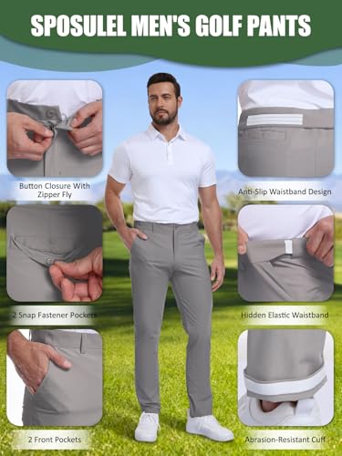 SPOSULEI Men’s Golf Pants Waist Elastic Lightweight Quick Dry Water Resistant for Casual Trousers with 4 Pockets