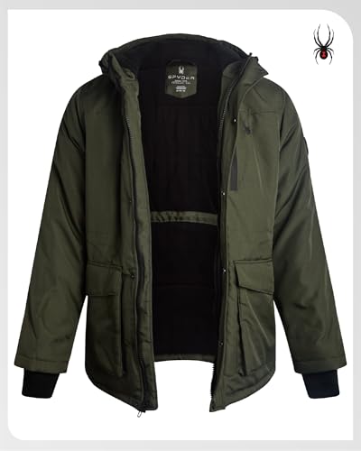 Spyder Mens Winter Coats – Polar Fleece Jacket Parka Down Winter Coat Wind Resistant Waterproof Hooded Jackets for Men