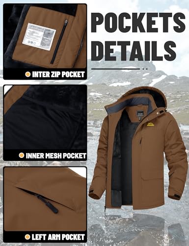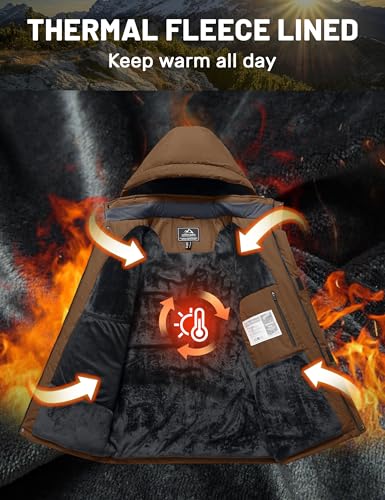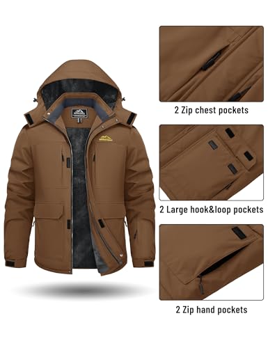 Specification: TACVASEN Men’s Winter Coats with 9 Pockets Waterproof Ski Jacket Warm Fleece Lined Parka with Hood for Work Outdoor