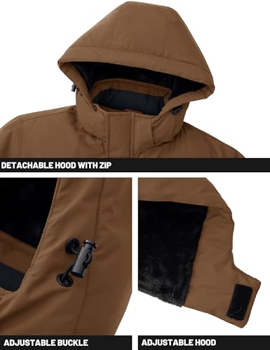 Men’s Winter Jacket Waterproof Fleece Coat Warm Insulated Parka Windproof Ski Snowboard Jacket with Detachable Hood And Multi-Pockets