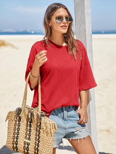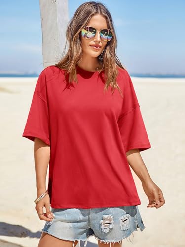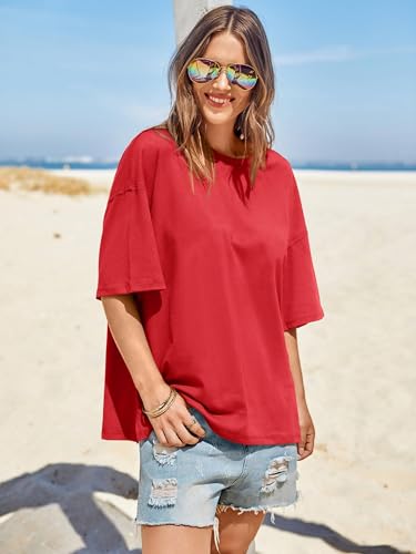 Tankaneo Womens Oversized Tshirts Summer Casual Short Sleeve Crew Neck T Shirt Loose Fit Side Slit Tee Tops