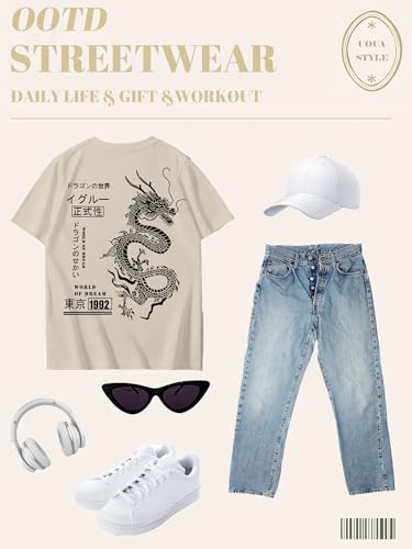 Specification: UOUA Mens Graphic Tees Vintage T-Shirts Oversized Letter Print Casual Crewneck Cotton Top Short Sleeve Rapper Streetwear