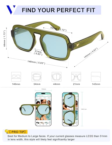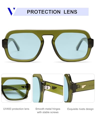 VANLINKER Oversized Retro Square Aviator Sunglasses for Women Men 70s Vintage Style Trendy Big Flat Top Sun Glasses VL9826