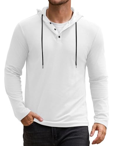 Vssjavun Mens Hoodie Pullover Long Sleeve Casual Henley Shirts Slim Fit Hooded Athletic Shirt with Drawstring