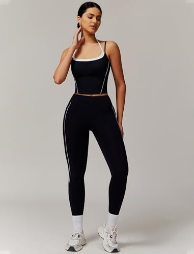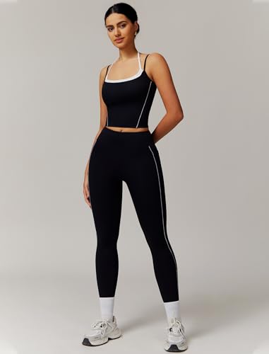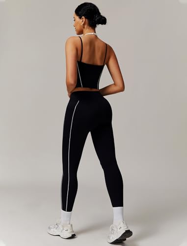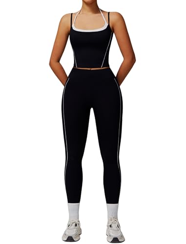 Womens Workout Sets Two Piece Spaghetti Straps Tank Top Matching High Waist Leggings Gym Work Out Outfits with Pockets