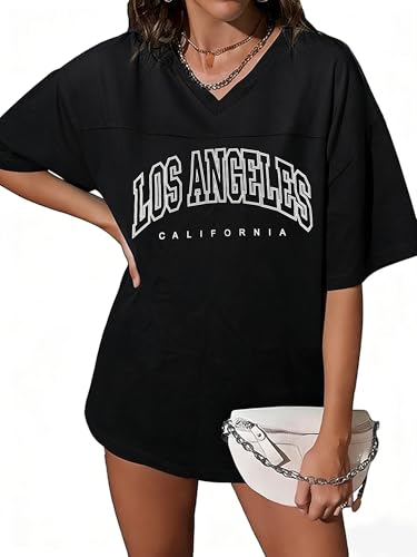 Women’s Y2k Baggy T-Shirts V Neck Short Sleeve Casual Loose Summer Tees Top Streetwear
