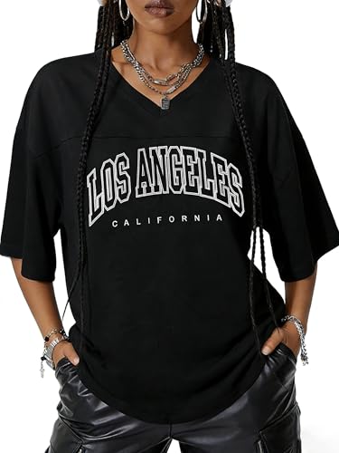 Specification: Women’s Y2k Baggy T-Shirts V Neck Short Sleeve Casual Loose Summer Tees Top Streetwear
