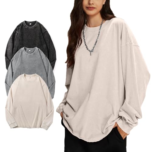 Specification: Wyeysyt 3 Pack Oversized Tshirts for Women Long Sleeve Cotton T-Shirts Vintage Acid Wash Baggy Unisex T Shirts