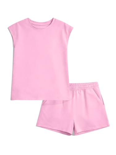 Specification: ZDC Girls Summer Outfits Casual Lounge Set Cap Sleeve T Shirt and Elastic Waist Shorts 2 Piece Clothing Sets