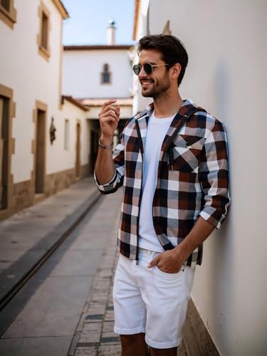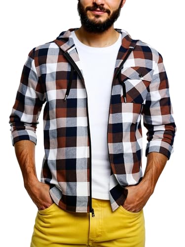 Specification: ZITY Men’s Cotton Linen Zip up Hoodies Long Sleeve Casual Tops Plaid Flannel Shirt with Hood