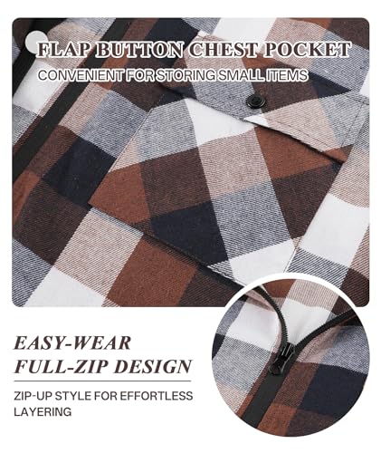 ZITY Men’s Cotton Linen Zip up Hoodies Long Sleeve Casual Tops Plaid Flannel Shirt with Hood