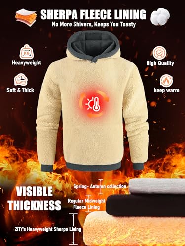 ZITY Men’s Sherpa Lined Hoodie Sweatshirts Heavy Pullover Kangaroo Pocket Winter Windproof Warm Fleece Hoodie Athletic